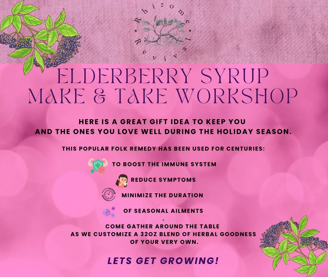 What: Learn how to make Elderberry Syrup and Fire Cider at home. We will discuss the benefits and explore variations of these tried and true folk formulas to personalize a blend that is just right for you and yours.